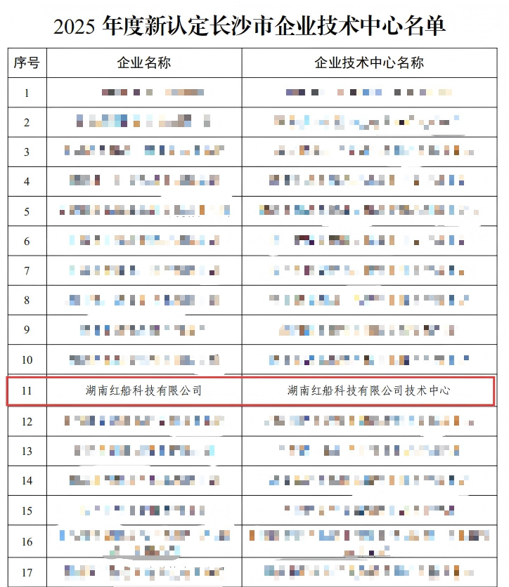 喜报--湖南红船科技有限公司获2025年度长沙市企业技术中心认定